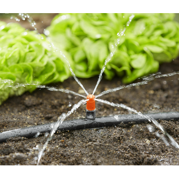 Dankzij de Gardena Micro Drip sproeier voor kleine oppervlakken kunnen kleinere oppervlakken, bijvoorbeeld met struiken of vaste planten, heel gericht worden besproeid. De besproeiingsdiameter kan worden ingesteld tussen 10 en 40 cm. De sproeier voor kleine oppervlakken wordt geïnstalleerd in de aanvoerbuis van 13 mm (1/2"). De verwijderbare stelhuls heeft een geïntegreerde reinigingsnaald waarmee de sproeier waar nodig kan worden gereinigd. Er worden 10 sproeiers meegeleverd.