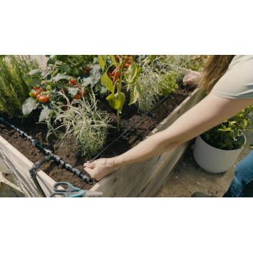 De Startset voor Verhoogde Bloembedden en Moestuinen van GARDENA is ideaal voor het betrouwbaar en waterbesparend bewateren van je verhoogde bloembed of moestuin. In deze complete set zitten alle onderdelen die je nodig hebt voor een waterbesparende bewatering tot wel 35 moestuinplanten, zoals tomaten en kruiden. Deze druppelbewatering is vooral erg handig voor kwetsbare perkplanten en zaailingen. De set is eenvoudig te installeren in een aantal stappen en is dus zomaar klaar voor gebruik. Daarnaast zijn de onderdelen gemakkelijk te koppen en ontkoppelen. Door de praktische herbruikbaarheid van het Micro-Drip-System is het ook duurzaam. De set voorziet de planten van de ideale hoeveelheid water, zelfs bij hoogteverschillen. Met extra MDS-onderdelen kun je de set gemakkelijk uitbreiden. Door bijvoorbeeld gebruik te maken van de Besproeiingscomputer Select (art. nr. 1891-20) kun je voor een nog efficiëntere watertoevoer zorgen. Je kan een programma instellen en je bloembed tuin wordt automatisch betrouwbaar bewaterd, zelfs als je er niet bent. Micro-Drip-System. Zo zorg je goed voor je planten maar bespaar je toch water. Makkelijk en nauwkeurig bewateren, om water en tijd te besparen.