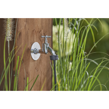 Het Kraanverbindingsstuk 4,6 mm (3/16") van GARDENA sluit je aan op een waterkraan en vormt het startonderdeel van het Micro-Drip-System. Na de montage kan je een 4,6 mm Koppelingsbuis of Druppelbuis koppelen om deze aan te sluiten op een Hoofdapparaat 1000 (art. nr. 13333-20) of Hoofdapparaat 2000 (art. nr. 13310-20). De adapter is ook geschikt om aan te sluiten op een kraantje van een waterreservoir, om het water in de tank te gebruiken voor het Micro-Drip-System. Dankzij de Easy & Flexible-koppelingstechnologie kan je het onderdeel moeiteloos aansluiten op de kraan, hem flexibel uitbreiden en makkelijk weer ontkoppelen. Dit maakt de adapter herbruikbaar en duurzaam. Het Kraanverbindingsstuk 4,6 mm (3/16") is een GARDENA-kwaliteitsproduct, gemaakt in Europa. Micro-Drip-System. Zo zorg je goed voor je planten maar bespaar je toch water. Makkelijk en nauwkeurig bewateren, om water en tijd te besparen.