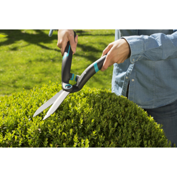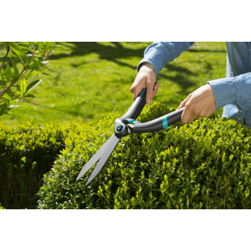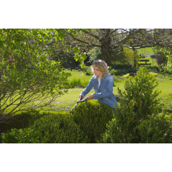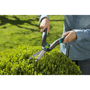 De Gardena PrecisionCut heeft een schaar met een z-vorm en rechte messen, waarmee het makkelijker is om je buxus in vorm te brengen, welke vorm je ook wilt knippen. Dankzij de antikleeflaag blijven de takken tijdens het knippen niet plakken aan de messen. Dat heeft niet alleen als voordeel dat je de takken soepeler doorknipt, maar ook dat je minder lang bezig bent met de schoonmaak én dat de messen een lange levensduur hebben. Met een licht gewicht van 0,7 kilogram, ergonomisch ontworpen handgrepen en de zachte buffer, ligt de PrecisionCut fijn in de hand en heb je minder belasting op je gewrichten.