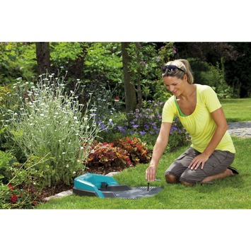 De Gardena Robotmaaier R50Li 18V Li-ion is een innovatieve robotmaaier welke zelfstandig het gazon verzorgt terwijl u van uw vrije tijd geniet of andere dingen doet. Dankzij het willekeurige bewegingspatroon maait de Gardena Robotmaaier R50Li 18V Li-io gazons tot maximaal 500m2 effectief, betrouwbaar en zonder streep- of spoorvormging. De robotmaaier rijdt zelf naar het oplaadstation voor nieuwe energie. Een grensdraad bakent het maaiterrein af, waardoor de maaier altijd binnen het maaigebied blijft. De vlijmscherpe mesjes snijden het gras altijd minimaal zodat er een klein mulchlaagje op het gazon achterblijft als natuurlijke meststof. Met een draaiknop kan de maaihoogte van 2 tot 5 cm eenvoudig ingesteld worden. Met een gewicht van 7,4 kilo kan de Gardena Robotmaaier R50Li 18V Li-ion binnen het maaigebied een hellingspercentage van maximaal 25% aan. Het programmeren gaat zeer eenvoudig en snel. Verschillende maaimomenten (tijden en dagen) kunnen ingesteld worden met de duidelijke display, voorzien van intuïtieve bediening en eenvoudig te volgen menunavigatie. Na het programmeren werkt de Gardena Robotmaaier R50Li 18V Li-ion geheel zelfstandig op de ingestelde tijden, zelfs als het regent. De krachtige en makkelijk te onderhouden Lithium-Ion 18 V / 1,6 Ah accu zorgt voor een betrouwbare en energiezuinige werking. Tot slot werkt de robotmaaier stil en zonder uitstoot. Met de Gardena Robotmaaier R50Li 18V Li-ion heeft u altijd een uitstekend verzorgd gazon!