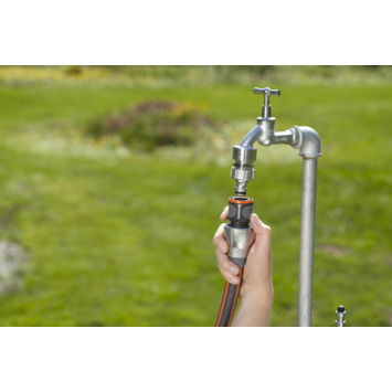 Met het GARDENA Slangstuk Premium 3/4" maak je snel en eenvoudig een betrouwbare verbinding met je 19 millimeter tuinslang. Dit slangstuk is ontworpen voor moeiteloos gebruik, zodat je het zonder moeite aan- en afkoppelt. Dankzij het ergonomische ontwerp met ribbels van zacht kunststof ligt het comfortabel in de hand, waardoor je geen ongemak ervaart tijdens het gebruik. De stevige metalen klemmoer houdt de slang stevig op zijn plaats, terwijl de elastische ring extra bescherming biedt tegen knikken en slijtage. Kies dit slangstuk voor een efficiënte watertoevoer in je tuin en geniet van een probleemloze tuinervaring.