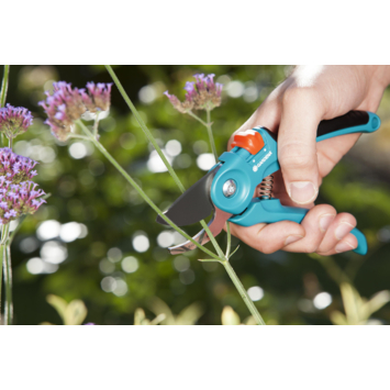 De Gardena snoeischaar Classic is een goede kwaliteit snoeischaar. Dankzij de smalle kop kan je nauwkeurig en gecontroleerd knippen. De schaar heeft een maximale knipdiameter van 20 mm en kan gemakkelijk bloemen en jonge loten knippen. De schaar heeft een aangepaste geometrie waardoor die zowel geschikt is voor grote en kleine handen. De zachte antislip laag op de ergonomische handgreep zorgt dat je comfortabel kan werken. Doormiddel van glasvezel in de grip, is de schaar extra licht en gaat die langer mee. Met de vergrendeling op de schaar is die altijd veilig op te bergen. Kortom, de Gardena snoeischaar Classic is een goede snoeischaar om comfortabel mee te werken.