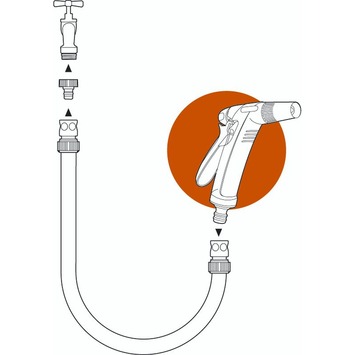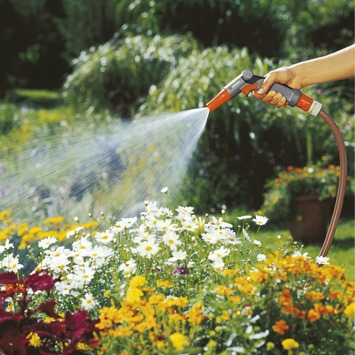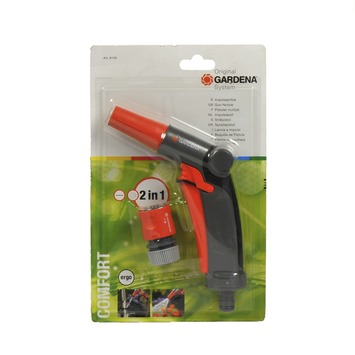GARDENA Spuitpistool Kunststof oranje/grijs met elementen van zachte kunststof, dus prettig in het gebruik. Spuitpistool eenvoudig vast te zetten met ergonomische impulsknop en voorzien van aansluiting voor een snelkoppeling/slangstuk. Voor het reinigen en sproeien met een fijne straal. Waterstraal traploos verstelbaar van volle straal tot fijne sproeinevel. Waterdoorvoer traploos regelbaar.