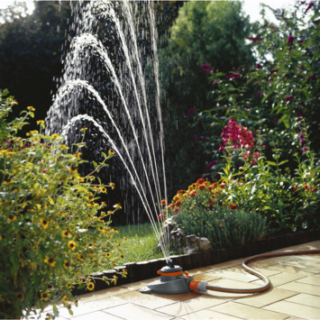 Deze is echt super. Besproeit in een keer doordat het een halve cirkel is, het grootste deel van de tuin. Dat is niet gelukt met de rechte sproeier van gardena. Die moet je 3x verzetten.