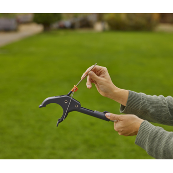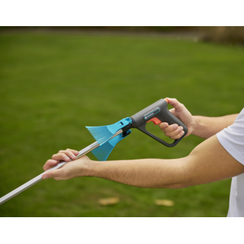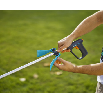 De Gardena tuinafvalgrijper- en prikker staal 95,8cm laat u uw tuin opruimen zonder uw rug te belasten. De prikker is voorzien van een drukknop om het opgeprikte afval te verwijderen. De bovenste grijparm is voorzien van een metalen strip om vastzittend vuil los te schrapen. Doordat de handgreep draaibaar is, kunnen zowel links- als rechtshandigen met deze handige hulp hun tuin of erf schoonhouden.