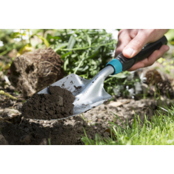 Je planten en bloemen verzorgen gaat een stuk makkelijker met het GARDENA Comfort tuinschepje. Dit handzame tuingereedschap is ideaal als je wilt planten, verplanten of potten vullen met verse aarde. Door de brede schep van 8,5 cm werk je snel en efficiënt, zowel in bloempotten als in border of balkonbak. Het ergonomische handvat ligt prettig in je hand, waardoor je langdurig comfortabel kunt werken. De slimme hoek aan het uiteinde van de greep voorkomt dat je hand wegglijdt, zelfs wanneer je kracht zet in stevige grond. Het schepje is gemaakt van hoogwaardig staal en afgewerkt met een sterke Duroplast coating. Dit beschermt tegen roest en slijtage. Zo heb je jaar na jaar plezier van betrouwbare kwaliteit.
