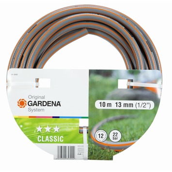 GARDENA Classic-slang PVC-tuinslang met hoogwaardig weefsel. Vormvast en drukbestendig. Voor middelmatig gebruik. 4-kleuren displayschijf. 13 mm (1/2), 10 m, zonder aansluitarmaturen
