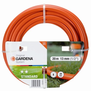 GARDENA Standaard-slang PVC-tuinslang met hoogwaardig weefsel. Vormvast en drukbestendig. Voor middelmatig gebruik. 4-kleuren displayschijf 13 mm (1/2”), 60 rollen van 20 m, zonder aansluitarmaturen