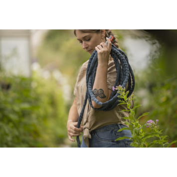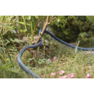Makkelijk op te bergen tuinslang, blijft elastisch na temperatuurschommelingen. Handige spuitkop meegeleverd in de doos.