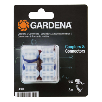 Met de Gardena verbindingsstukken koppel je de grensdraad voor uw Gardena robotmaaier aan elkaar wanneer u aan één stuk niet genoeg hebt. Deze set bevat 6 koppelstukken en 3 aansluitklemmen voor het aansluiten en verlengen van de grensdraad en zoekdraad