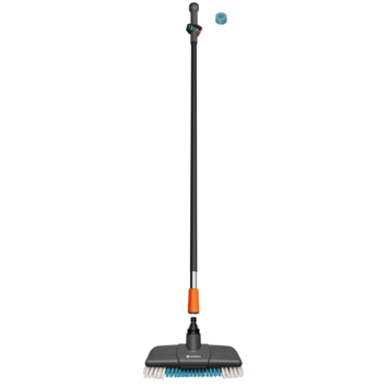 De Gardena vloerschrobberset 5586 zwart is een complete set voor het grondig reinigen van harde oppervlakken. Via de waterdoorvoer van de original Gardena systeemaansluiting verspreidt u de mix van universeel reinigingsmiddel en water. In deze set vindt u een comfort schrobber, watersteel 150cm, en reinigingsmiddel.
