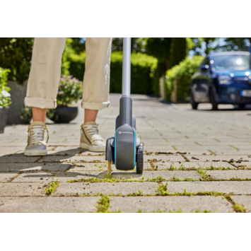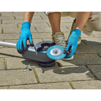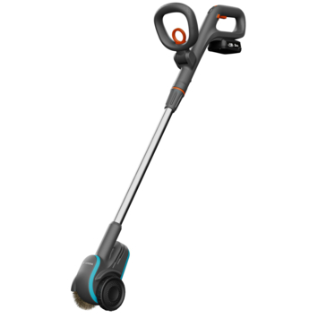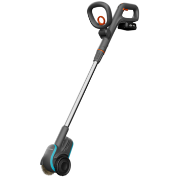 De GARDENA accu voegenborstel EasyWeed 1800/18V P4A reinigt grondig zonder chemicaliën, simpelweg met een druk op de knop. Met de handige EasyWeed 1800/18V P4A maak je de voegen snel en moeiteloos schoon, zonder gedoe. Vuil en afzettingen worden gemakkelijk verwijderd. Het lichte apparaat is aanpasbaar aan jouw lengte dankzij de verstelbare schacht. De ergonomische handgreep en extra voorste handgreep zorgen voor comfortabel gebruik. Het slanke ontwerp maakt precies werken eenvoudig, doordat je altijd zicht hebt op de voeg en de borstel. Een markering op de behuizing helpt bij het precies positioneren van de borstel. Het geleidewiel vergemakkelijkt het gebruik en ontlast de gebruiker. Een vuilopvangbak en beschermkap zorgen voor netheid tijdens het werken. De stalen voegenborstel is geschikt voor robuuste oppervlakken en smalle voegen. Voor krasgevoelige oppervlaktes wordt het gebruik van een apart verkrijgbare nylon voegenborstel met zachtere haren aanbevolen. De accu-voegenborstel EasyWeed 1800 biedt een individuele snelheidsregeling, waardoor gevoelige plekken voorzichtig kunnen worden gereinigd met minder borstelomwentelingen. Wanneer meer kracht nodig is, kan hij tot 1.800 tpm gaan. Het LED-display op het handvat toont de resterende acculading. De benodigde 18 volt accu is gebaseerd op Bosch-technologie en is compatibel met diverse andere tuingereedschappen van GARDENA en ook met producten van andere fabrikanten in de POWER FOR ALL alliantie.