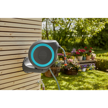 De Gardena wandslangenbox 20 meter maakt het bewateren van je tuin eenvoudig, de slang van 20 meter rolt automatisch op nadat je een korte ruk aan de slang geeft. De geïntegreerde slangegeleider zorgt ervoor dat de slang altijd goed oprolt en voorkomt knikken in de slang. Hierdoor kun je de slang altijd zonder problemen gebruiken.