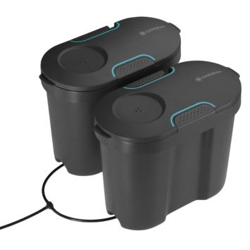 Het waterreservoir is gemaakt van tot 80 procent gerecycleerd materiaal en kan daarnaast gebruikt worden als bewaarmogelijkheid voor andere tuinbenodigdheden. Door het moderne design is het waterreservoir tijdloos en onopvallend en kan het optimaal in elke woonruimte of buiten op het balkon geplaatst worden. Ook kunnen er veel planten worden besproeid met het GARDENA-waterreservoir: Door gebruik te maken van de verbindingsmogelijkheid kan het watervolume worden verhoogd door de aansluiting van andere waterreservoirs. Als je de AquaBloom set verbind kan de bewateringsduur van de planten flexibel en naar wens worden gekozen. Het waterreservoir kan met maximaal 10,5 liter water worden gevuld.