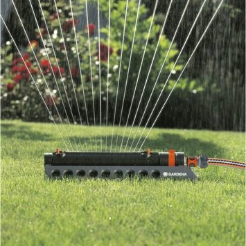 De Gardena zwenksproeier aquazoom kunststof 53x16,8x10cm stelt u in staat uw tuin tot een oppervlakte van 250m2 moeiteloos te besproeien. Met een traploos instelbare reikwijdte van 7 tot 17 meter bepaalt u de hoeveelheid water per vierkante meter. De regelbare sproeibreedte geeft u dezelfde vrijheid; van 3,5 tot 14 meter breed. Voor kleine tuinen is dit een prima in te zetten sproeier.