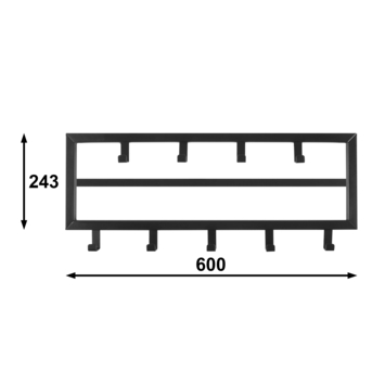 Deze industriele en moderne wandkapstok beschikt over 9 haken en is van metaal en vervolgens zwart afgewerkt.