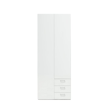 De 2-deurs garderobekast IVET is met zijn afmetingen van (hxbxd) 200x78x50 en zijn witte houtnerf kleur perfect voor jouw slaapkamer. Deze 2-deurs kledingkast neemt niet veel ruimte in, wel biedt hij veel opbergruimte voor jouw kleding. De kast heeft aan de linkerkant een hanggedeelte met daarboven een plank die nog ruimte biedt voor een leggedeelte. Aan de rechterkant een deur met nog 4 legplaatsen met daaronder nog 4 lades om meer op te kunnen bergen. Door zijn witte houtnerf kleur is hij goed te combineren met andere meubelen. Kortom: een perfecte kast voor in jouw kamer.