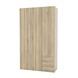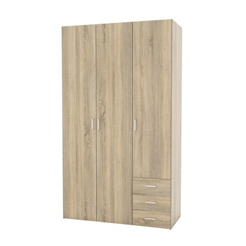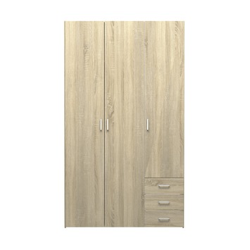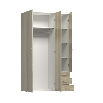 De 3-deurs garderobekast IVET is met zijn afmetingen van (hxbxd) 200x116x50 en zijn mooie lichteiken kleur een mooie aanvulling voor elke slaapkamer. Deze 3-deurs kledingkast biedt veel ruimte zodat je al jouw kleren makkelijk kunt opbergen. De kast biedt aan zijn linker kant hanggedeelte van 2 deuren met daar boven nog een legruimte. Aan de rechterkant is een deur met 4 leg plaatsen. Hieronder nog 3 lades voor legruimte. Door zijn mooie lichteiken kleur is hij goed te combineren met veel andere meubelen in jouw huis. Ook kun je de kast goed combineren met meer meubelen uit de IVET lijn. Het is de perfecte kast voor al jouw slaapkamers.