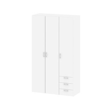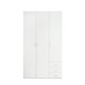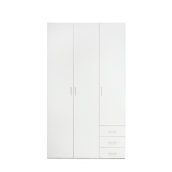 De 3-deurs garderobekast IVET is met zijn afmetingen van (hxbxd) 200x116x50 en zijn mooie witte houtnerf kleur een mooie aanvulling voor elke slaapkamer. Deze 3-deurs kledingkast biedt veel ruimte zodat je al jouw kleren makkelijk kunt opbergen. De kast biedt aan zijn linker kant hanggedeelte van 2 deuren met daar boven nog een legruimte. Aan de rechterkant is een deur met 4 leg plaatsen. Hieronder nog 3 lades voor legruimte. Door zijn mooie witte houtnerf kleur is hij goed te combineren met veel andere meubelen in jouw huis. Ook kun je de kast goed combineren met meer meubelen uit de IVET lijn. Het is dus de perfecte kast voor al jouw slaapkamers.