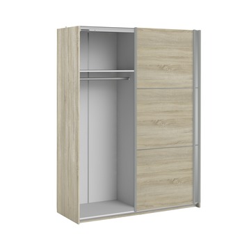 De garderobekast JANNEKE met de afmetingen (hxbxd) 202x152x64 is uitgevoerd in een licht eiken kleur. De kast heeft schuifdeuren en wordt standaard geleverd met een 2 roedes voor een hanggedeelte en 2 legplanken. Ook zit er een spiegel op de deur. De kast is makkelijk te combineren met andere meubelen. Het interieur van de kast is uit te breiden met 3 legplanken en een ladenblok om de kast geheel naar eigen wens in te delen. Door uitbreiding met 3 extra legplanken en/of een ladeblok creëer je meer opberggemak. Om de kast altijd zachtjes dicht te laten vallen is er ook een softclose beschikbaar. Je kan niet alleen je kamer naar eigen wens maken maar ook jouw kast. Perfect voor in elke kamer.