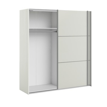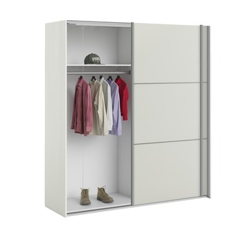 De garderobekast JANNEKE met de afmetingen (hxbxd) 202x182x64 is uitgevoerd in een witte kleur. Je kan de kast goed combineren met andere meubelen in de kamer. De kast bestaat uit schuifdeuren en wordt standaard geleverd met 2 roedes voor een hanggedeelte en 2 legplanken. De kast heeft veel leg en hangruimte zodat je veel kwijt kan. Zelf kan je nog 3 lades aanschaffen die je in de kast kan plaatsen. Het interieur van de kast kan je zelf uitbreiden met legplanken en een ladenblok om de kast geheel naar eigen wens in te delen. Door deze uitbreiding creëer je meer opberggemak. Om de kast altijd zachtjes te laten dichtvallen is er ook een softclose beschikbaar.