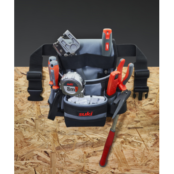 In de 11-vaks gereedschap- en spijkertas berg je al je spijkers, schroeven en ander gereedschap handig op. De tas heeft 11 opbergvakken waarin je gereedschap, schroeven, spijkers en andere kleine voorwerpen kwijt kan. Daarnaast heeft de tas 2 hamerringen die het meedragen van hamers gemakkelijk maken. Je bevestigt de gereedschap- en spijkertas met behulp van de verstelbare riem. Zo heb je al je gereedschap, spijkers en schroeven direct bij de hand wanneer je aan het klussen bent.