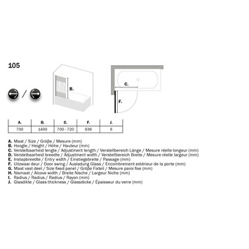 De Get Wet Badklapwand S105 140x70 cm met Decor is een 6 mm dikke wand van veiligheidsglas. Met zijn moderne Kabana decor wordt u deels aan het zicht onttrokken. Dat geeft u wat extra privacy. De stijlvolle hoogglans afwerking maakt het tot een smaakvol geheel. Doordat de wand naar binnen en buiten pendelt is deze ook nog eens makkelijk schoon te houden.De 105-badwand is hét betaalbare alternatief dat helemaal past in de moderne badkamer. Het profielarme ontwerp met een chromen uitstraling en het veiligheidsglas van maar liefst 6 mm dikte, zorgen voor een wand die perfect opgaat in zijn omgeving. De 105 badwand heeft een modern wit patroon op het glas, geïnspireerd op een rietveld. Het patroon zorgt er voor dat u deels aan het zicht wordt onttrokken. Het glaspaneel scharniert naar binnen én naar buiten toe, wat voor groot schoonmaakgemak zorgt.