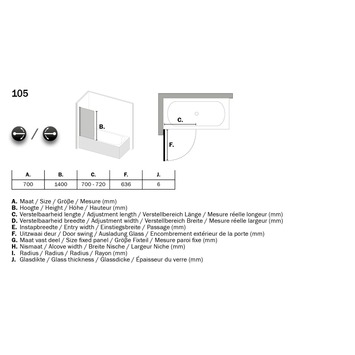 Deze badwand heeft een verstelbaarheid van 70 tot en met 72 cm.