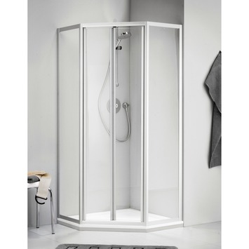 De Get Wet Douchecabine met Pendeldeur C110 5-hoek Mat Zilver 190x100 cm geeft je een grote en ruimtebesparende douchecabine. Door zijn vijfhoek opstelling met 2 deuren sta je diagonaal maar heb je nog steeds een comfortabele ruimte om te gebruiken. Doordat de handgreep in het profiel is verwerkt ziet het geheel er transparant en minimalistisch uit.