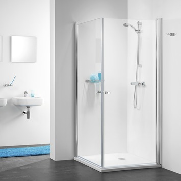 De Get Wet Douchecabine met Swingdeur C105 Hoekinstap 100x195 cm Chroom heeft twee swingdeuren. Hierdoor krijg je een ruime instap. Dit betaalbare alternatief geeft jouw douche een moderne uitstraling. Het profielarme ontwerp zorgt tevens voor een stijlvolle aanblik. Door de hoekstap op de vloer van de cabine te plaatsen, beschik je snel over een drempelloze en ruime douchehoek. De hoekinstap in de 105-serie met twee ruime swingdeuren is hét betaalbare alternatief dat past in de moderne badkamer. Het profielarme ontwerp zorgt voor een stijlvolle oplossing. De deur is bovendien uitstekend op de vloer te plaatsen, waardoor een drempelloze doucheoplossing ontstaat die perfect past bij de badkamer van nu.