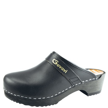Gevavi schoenklomp met lederen kap en houten zool. Voor vele toepassingen bruikbaar en makkelijke in- en uitstap.