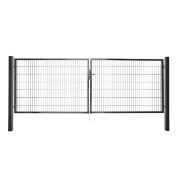 Met de Giardino dubbele tuinpoort Roma/Milano antraciet geef je je tuin een stevige en stijlvolle toegang. Deze poort bestaat uit twee robuuste panelen van elk 200 cm breed en 180 cm hoog, gemaakt van gehard staal. De antraciete coating biedt niet alleen een mooie uitstraling, maar beschermt ook tegen roest en weersinvloeden. De poort wordt geleverd met stevige poten, een klink en sleuteltje, wat de installatie eenvoudig maakt. Voor meer opties, zoals enkele poorten in verschillende maten en kleuren, kun je terecht in onze webshop.
