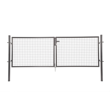 Deze Giardino dubbele tuinpoort van 150 cm hoog en 2 x 150 cm breed in de kleur antraciet is een stevige en betrouwbare keuze voor jouw tuin. Het frame is gemaakt van twee 40 mm buizen voor extra sterkte en stabiliteit. De poort heeft een verzinkte en epoxy-gecoate afwerking, waardoor hij bestand is tegen alle weersomstandigheden. Bij de aankoop ontvang je een slot met handgreep en twee sleutels voor een veilige afsluiting. De scharnieren zijn regelbaar, zodat je de poort precies naar wens kunt afstellen. Het geweven gaaspaneel van 50 x 50 mm met 4,0 mm draad biedt zowel privacy als bescherming. Verder krijg je twee stevige poortpalen van 60 mm die langer zijn dan de poorthoogte voor extra stabiliteit. Ook ontvang je een grondanker en pin voor een stevige verankering. De poort is eenvoudig te installeren met de bijgeleverde montage-instructies.