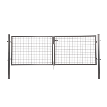 Deze Giardino dubbele tuinpoort van 175 x 300 cm in antraciet is een uitstekende keuze voor grotere tuinen. Het frame van 40 mm buizen zorgt voor een robuuste en stevige poort. De poort is verzinkt en epoxy-gecoat, waardoor hij bestand is tegen alle weersomstandigheden. Bij de aankoop krijg je een slot met handgreep en twee sleutels voor een veilige afsluiting. De scharnieren zijn eenvoudig regelbaar voor de perfecte afstelling. Het gaaspaneel van 50 x 50 mm met 4,0 mm draad biedt zowel bescherming als privacy. Je ontvangt twee poortpalen van 60 mm, die langer zijn dan de poorthoogte voor extra stabiliteit. Ook krijg je een grondanker en pin om de poort stevig in de grond te verankeren. De montage is eenvoudig met de meegeleverde instructies.
