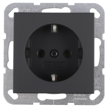 Met de Gira E2 Enkel Geaard Stopcontact Mat Zwart kun je elektrische apparaten voorzien van stroom. De aarde zorgt ervoor dat, in geval van kapotte- of losgeschoten bedrading in een apparaat (bv. wasmachine of computer), de metalen delen niet onder stroom komen te staan, de stroom wordt dan via een extra aardedraad in de aarde geleid.