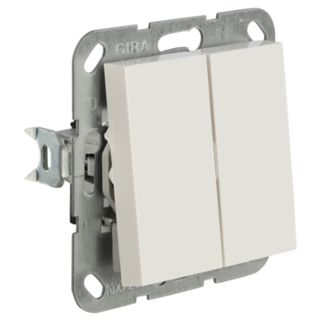 De Gira ST55 serieschakelaar wit kunt u gebruiken om een lichtpunt aan- of uit te schakelen vanuit één of twee plaatsen (hier aan, daar uit). Een serieschakelaar wordt ook wel dubbele schakelaar genoemd. U kunt deze niet toepassen in een wisselschakeling.