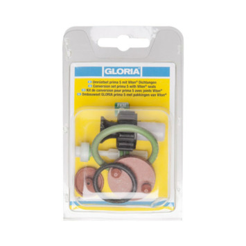De Gloria viton ombouwset voor de Prima 3 en de Prima 5 maakt de drukspuit bestendig tegen agressievere zuuurhoudende vloeistoffen.