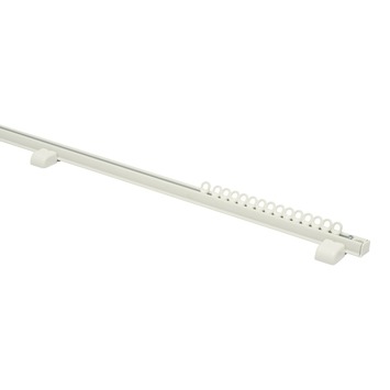 De complete set bevat alle onderdelen die u nodig heeft: 200cm rail, 20 glijders, 5 plafondsteunen en 2 eindstops.