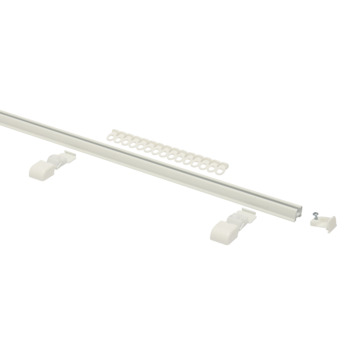 De complete set bevat alle onderdelen die u nodig heeft: 250cm rail, 25 glijders, 6 plafondsteunen en 2 eindstops