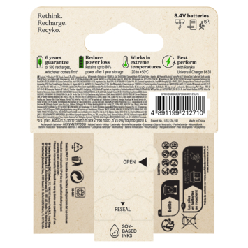 De LED-indicator licht groen op als de batterijen op de juiste wijze zijn geplaatst en het laden begint. De laadtijd varieert van vijf uur voor een C-cell of D-cell tot maximaal 16 uur voor een 9-voltsbatterij. Aan de achterzijde bevinden zich twee slots voor 9-voltsbatterijen; deze zijn gelijktijdig op te laden. Adapter met snoer voor de netvoeding is inclusief.