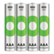 De GP AAA batterijen zijn oplaadbaar en kunnen dus vele malen worden hergebruikt. De batterijen hebben een capaciteit van 850 mAh en zijn geschikt voor alle apparaten. De batterijen zijn beschikbaar in een handige set die bestaat uit vier stuks.