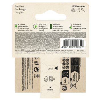 De GP oplaadbare batterij ReCyko AAA 2 stuks houdt meer dan 2 jaar lang energie vast, ook al worden ze enige tijd niet gebruikt. ReCyko+ batterijen zijn geschikt voor elk apparaat en tot wel 300x herlaadbaar. De AAA batterij beschikt over een capaciteit van 850 mAh.