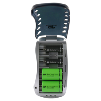 Met de GP batterijlader incl. 4 AA batterijen zijn lege batterijen na slechts 6 uur weer volledig opgeladen. Het is mogelijk om tegelijkertijd 2 of 4 stuks AA- of AAA-batterijen op te laden. De lader stopt met laden zodra de batterijen vol zijn. Zo zijn uw batterijen beveiligd tegen overladen en gaan ze langer mee.