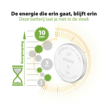 De CR2450 3V Lithium knoopcel van het merk GP is geschikt voor een breed gamma van applicaties die een lange werkingsduur binnen een wijd temperatuurspectrum moeten kunnen garanderen. Deze batterijen bieden superieure prestaties qua betrouwbaarheid en veiligheid en hebben een uitstekende houdbaarheidsduur bij kamertemperatuur.