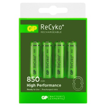 Kinderspeelgoed, zaklampen, draadloze keyboards… Zodra apparaten veel stroom verbruiken, presteren oplaadbare batterijen beter dan eenmalige batterijen. Een kwestie van power. Neem de ReCyko+ van GP met 850 mAh. Een batterij met hoge capaciteit. Functioneert perfect in je afstandsbediening, pc-muis, game controller, rookmelder, bewegingsmelder en LED-verlichting. Wel driehonderd maal opnieuw te laden, wat niet alleen in je portemonnee scheelt, maar ook het milieu spaart. Eerst opladen hoeft niet, dus recht uit de verpakking klaar voor gebruik. ReCyko+ batterijen houden hun energie langer vast, ook al laat je ze een tijdje links liggen. Na een jaar zelfs nog tachtig procent van hun power of meer. Blisterverpakking met vier stuks.