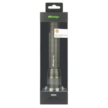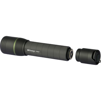 De PR57 LED-zaklamp van GP Design. Zeer krachtig met zijn lichtopbrengst van 1000 lumen en een focusseerbare bundel met een reikwijdte van 180 meter. Oplaadbaar via USB, dus nooit meer batterijen vervangen. Inclusief micro USB kabel, polsbandje en opbergtasje. Bekroond met Red Dot Award 2017.