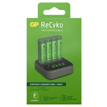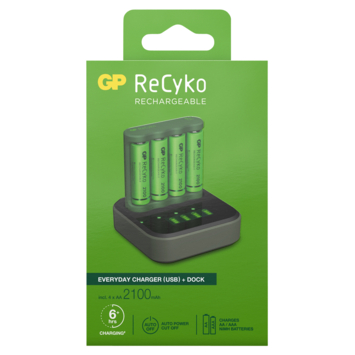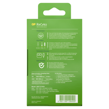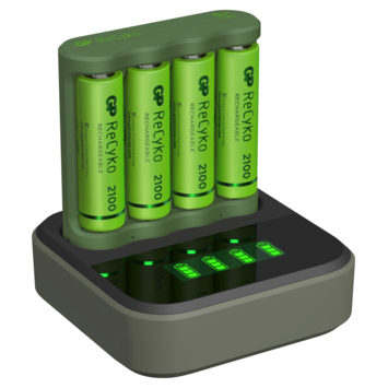 Met de GP PowerBank batterijoplader voor het opladen van 4 oplaadbare penlite (AA) batterijen. De lader heeft een laadduur van 3,5 tot circa 7 uur. De LED-indicatoren geven aan wanneer de batterijen zijn opgeladen. Deze GP PowerBank batterijoplader wordt geleverd inclusief 4 GP oplaadbare penlite batterijen AA. Deze batterijen zijn van zeer goede kwaliteit en zijn keer op keer oplaadbaar.