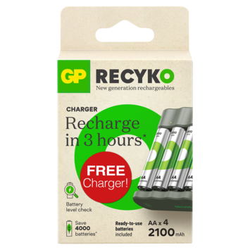 GP ReCyko oplaadbare batterijen AA 2100 mAh 4 stuks + gratis lader