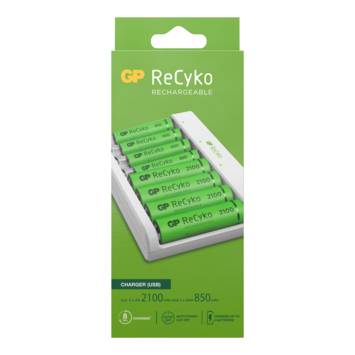 Deze compacte lader werkt via USB. 4 AA 2100mAh en 4 AAA 850mAh zijn inbegrepen. Start dus nu met opladen!